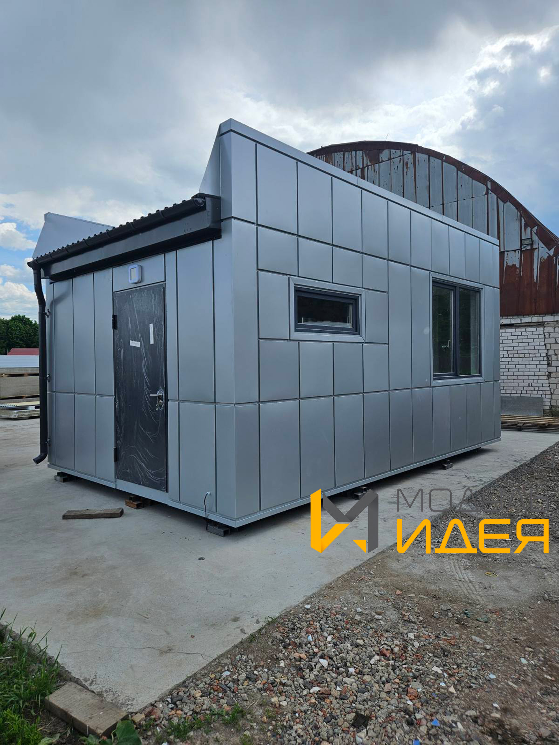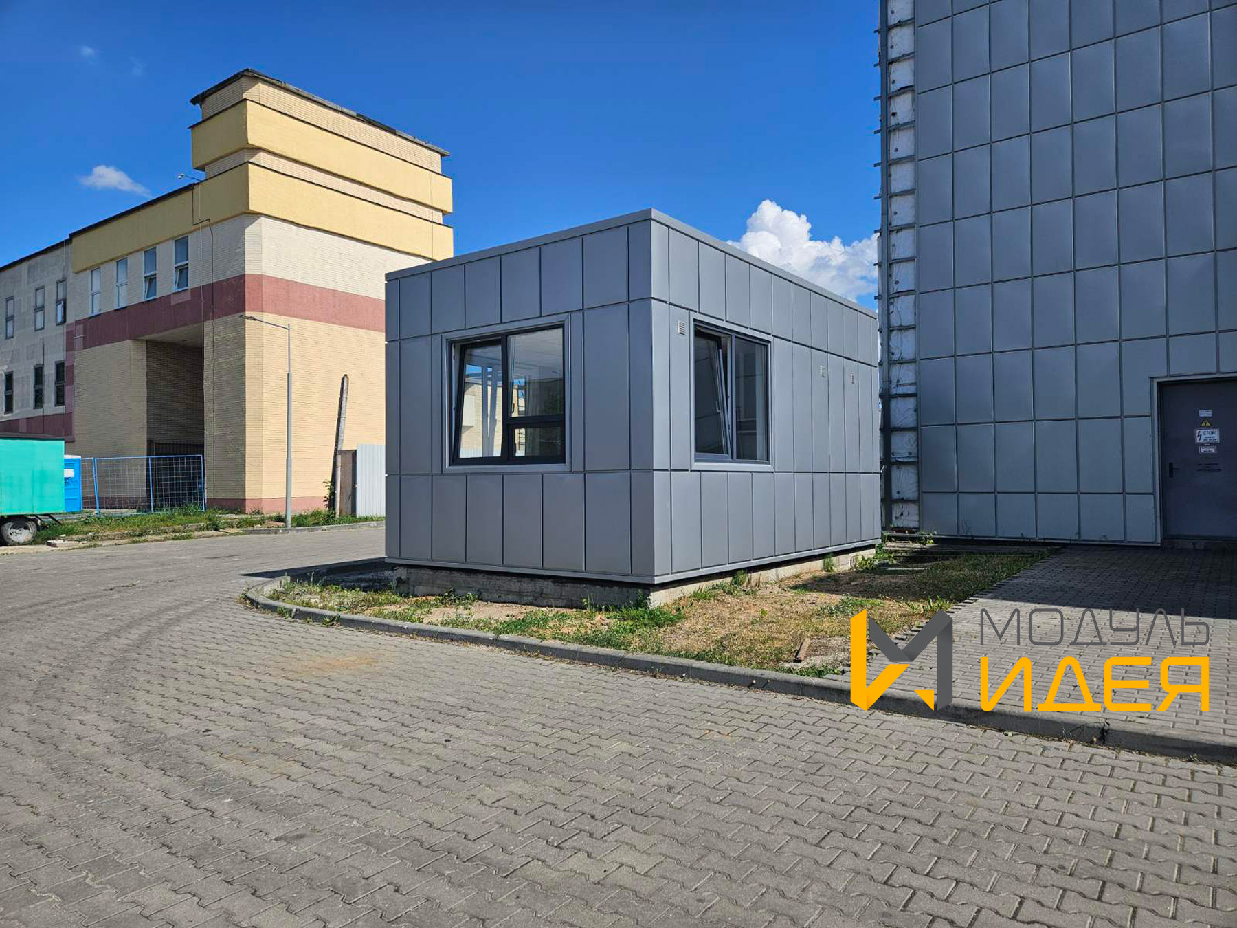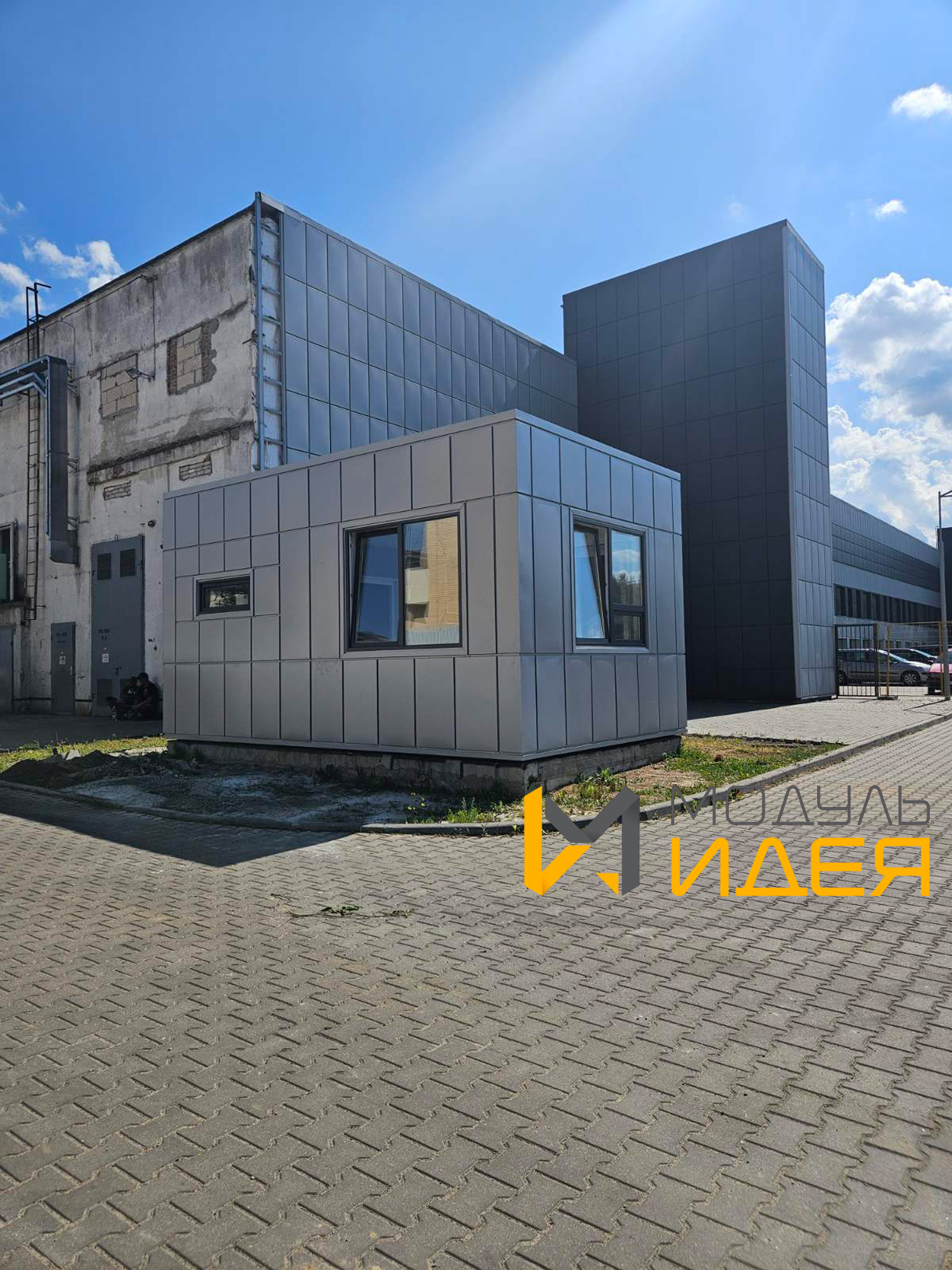 Описание: модульное здание оборудовано санузлом, кабинетом охраны, системами отопления, кондиционирования, водоснабжения и электрификации.