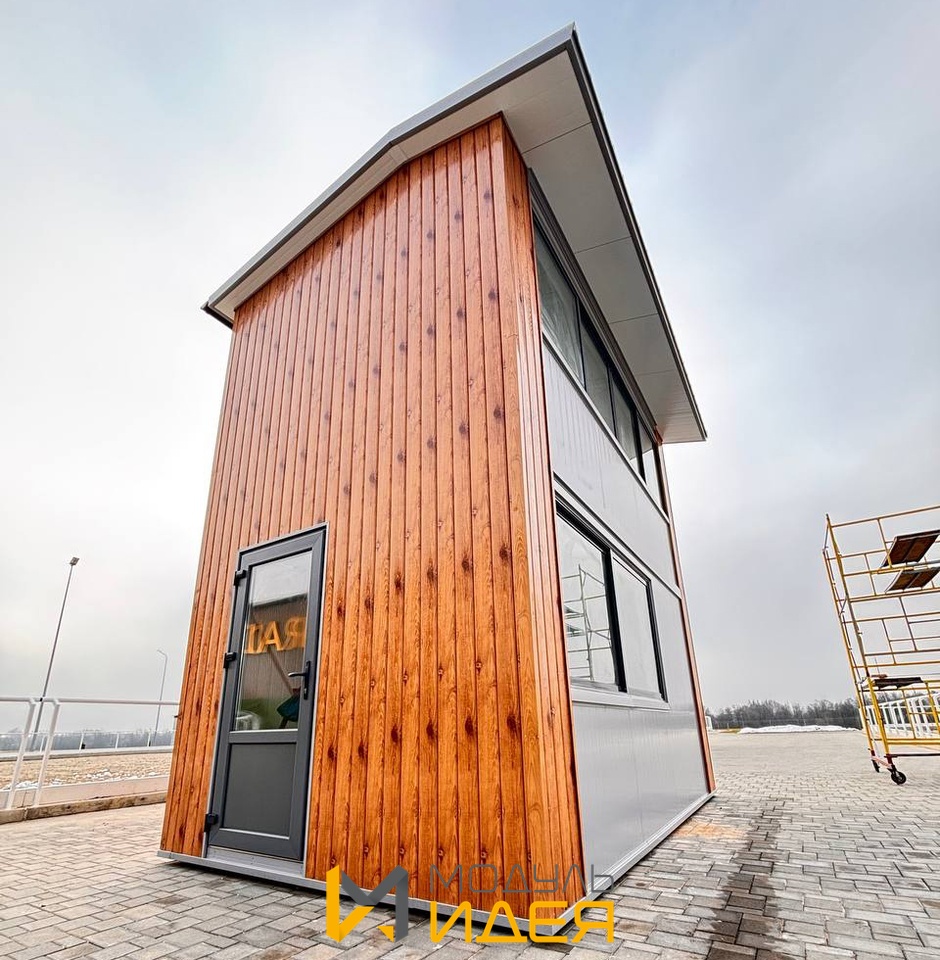 Перед вами – не просто здание, а двухъярусный командный центр, где рождаются самые верные вердикты! Модульность – наша фишка, а комбинированный фасад с изящной металлической имитацией бруса – наша гордость. Эта кабина – симбиоз функциональности и эстетики, доказывающий, что даже самые серьезные задачи можно решать с размахом и стилем. Стильно, функционально, и да, ооочень круто!
