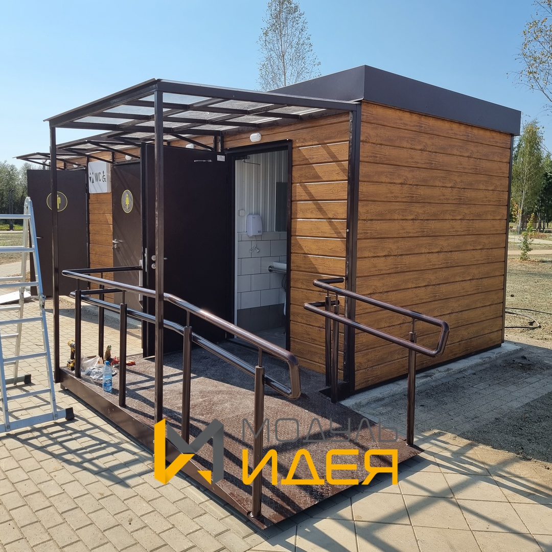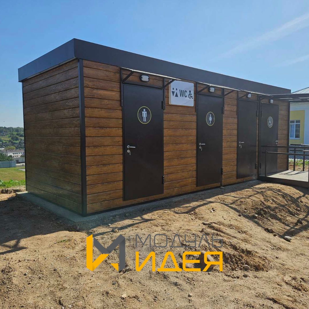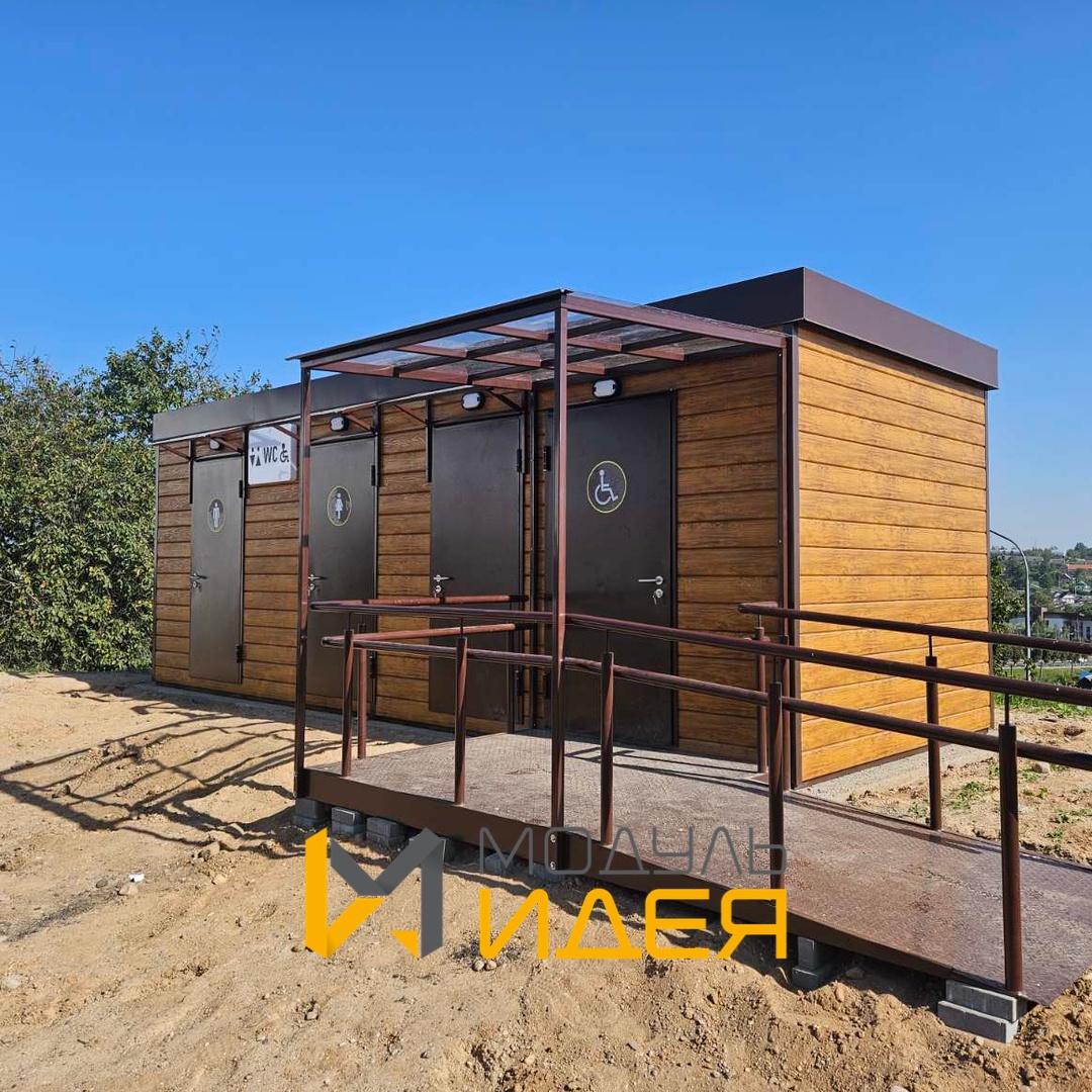 Мы настолько увлеклись процессом, что создали туалет, который выглядит как маленькая уютная избушка! Фасад "под брус" придает ему особый шарм, а продуманность кабинок (М, Ж, ФОЛ) гарантирует удобство для всех. Заходите – мы предусмотрели всё, чтобы было "вау"!