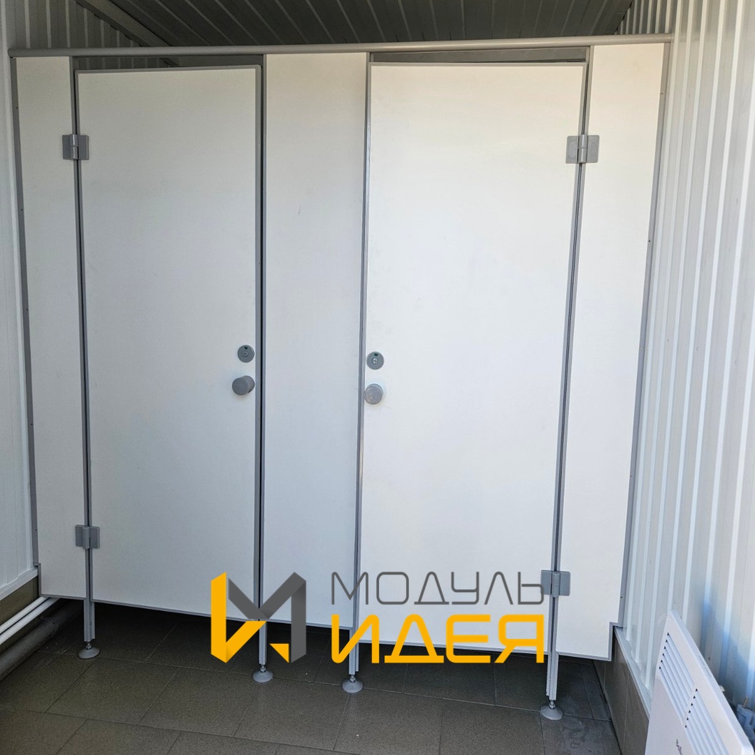 - Для санитарных кабин «М» и «Ж» входная металлическая дверь с врезным замком и доводчиком размер 2100х900 мм.