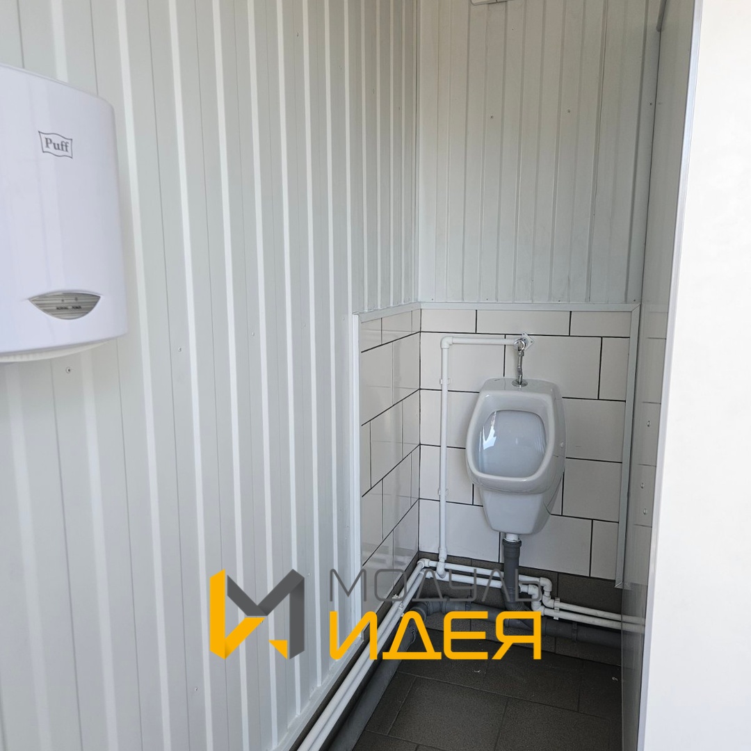 - бойлер, унитаз, умывальник, писсуар, водомерный узел с прибором учета, поддон 800х800 мм для мойки уборочного инвентаря комплект.
