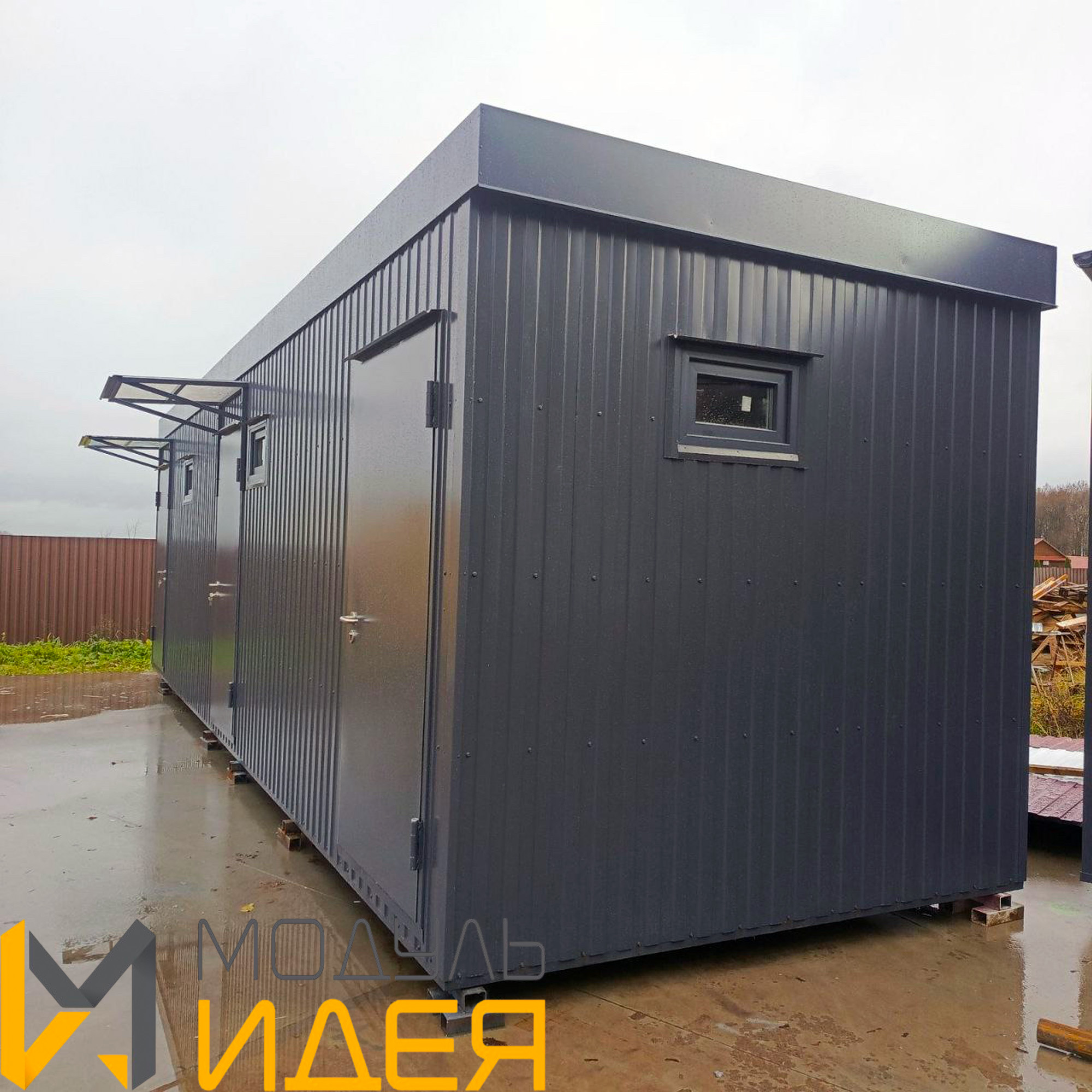 - Изготовление модульной конструкции в заводских условиях. Каркас из стальных профилей. Стены, пол и потолок из сэндвич-панелей. Установлены двери и окна (антивандальные, с доводчиками).