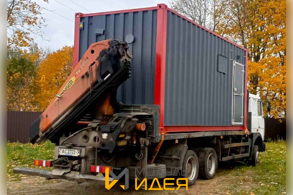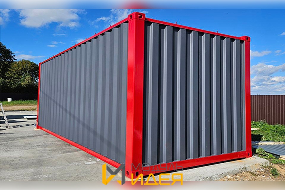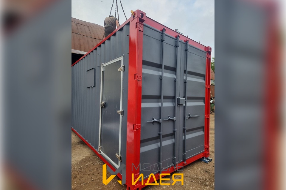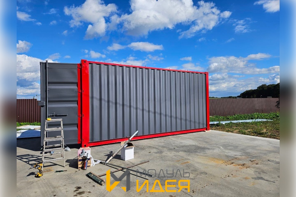 Габариты контейнера 6058х2438х2836 мм.Металлический каркас сформирован на базе 20‑футового морского контейнера. Все элементы каркаса были подготовлены — выполнена зачистка до металлического основания, после чего нанесены защитные покрытия.