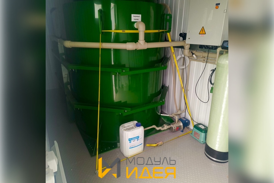 Одной из ключевых функций комплекса является очистка сточных вод до показателей, соответствующих требованиям к воде водоемов рыбохозяйственного водопользования — до уровня ПДК загрязнений. Также обеспечивается биологическая очистка с удалением азотной и фосфатной групп. Технологический процесс реализуется с применением метода пост‑симультанной нитри‑денитрификации и предвключённой денитрификации, чтобы гарантировать эффективность очистки в заданном режиме эксплуатации.Что мы сделали: контейнер и исполнение конструкции